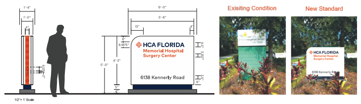 During this project, existing hospital signage was redesigned and updated to meet current HCA brand standards, resulting in improved visual consistency, unified messaging, and operational clarity throughout each facility.